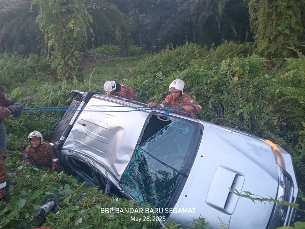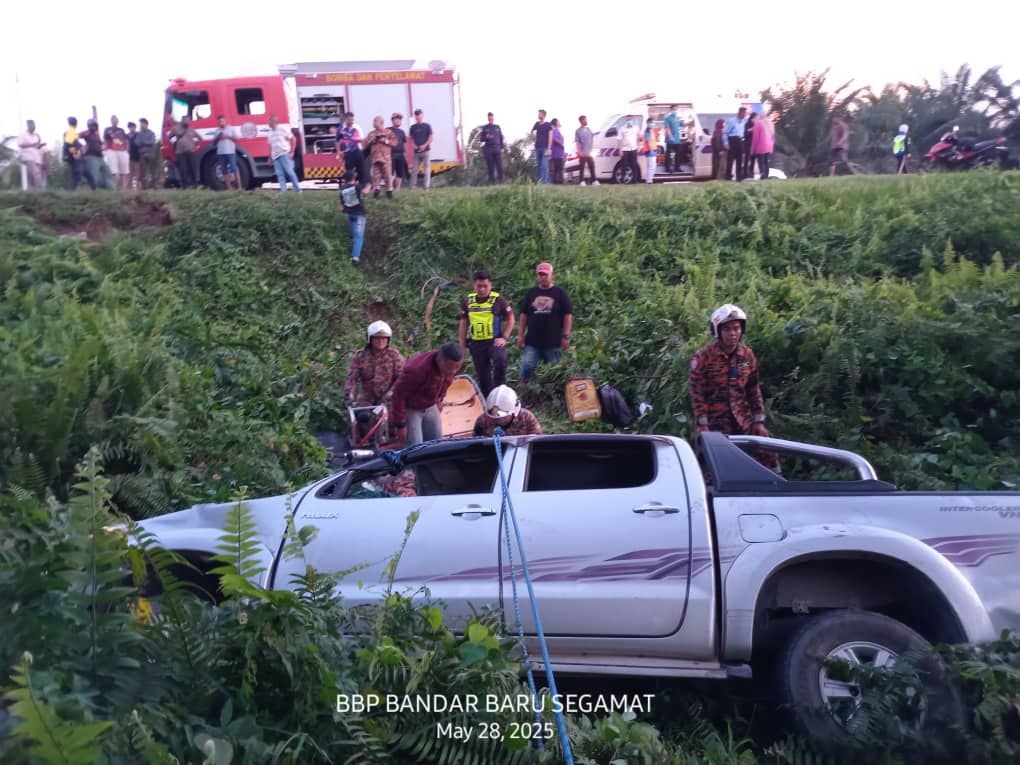 “Setibanya di tempat kejadian, didapati berlaku kemalangan jalan raya melibatkan sebuah Toyota Hilux yang terbabas lalu jatuh ke dalam gaung kira-kira lima meter.