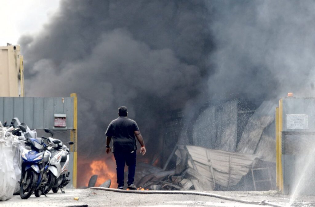 “Punca kebakaran masih terlalu awal untuk dikenal pasti namun berdasarkan keterangan pekerja, kebakaran dipercayai berpunca dari kawasan kitar semula dan simpanan minyak enjin,” ujarnya.