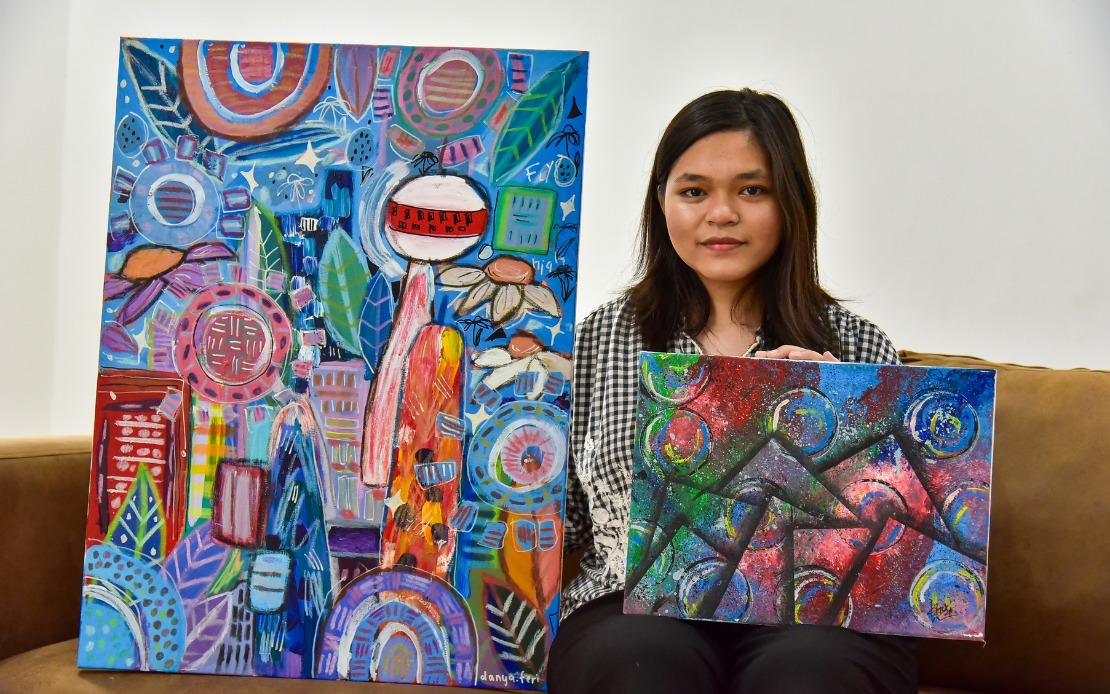 Danya Adriana Feri Pito Manda, 17, kini semakin dikenali dalam kalangan penggiat seni tempatan sebagai pelukis muda yang mengetengahkan karya abstrak berinspirasikan elemen budaya Melayu – satu pendekatan segar yang menggabungkan unsur warisan dengan teknik moden.