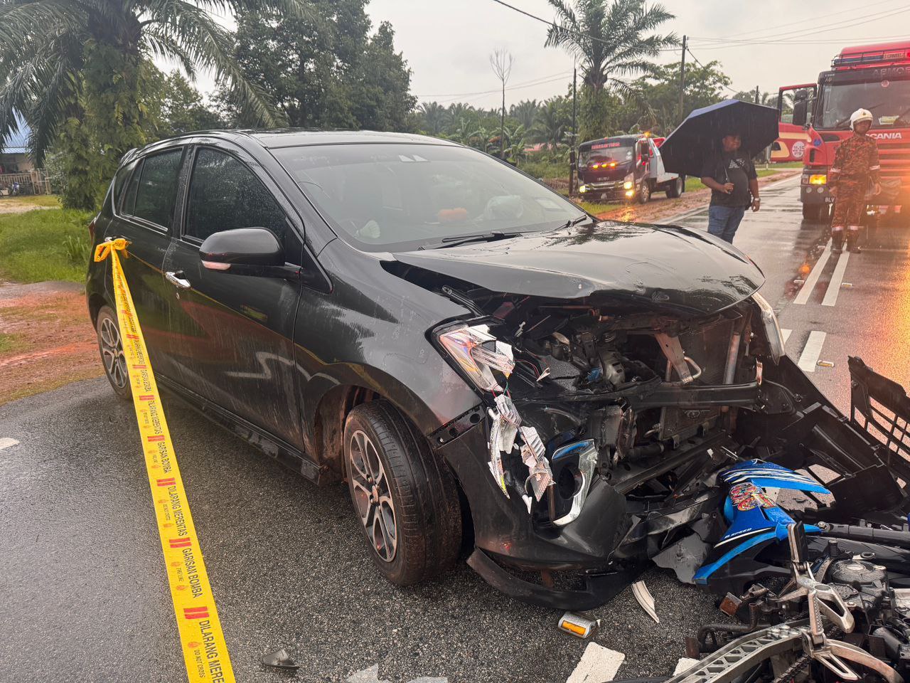 “Siasatan awal mendapati kemalangan berpunca daripada kereta Perodua Myvi yang cuai ketika keluar simpang lalu memasuki laluan bertentangan menyebabkan berlaku pelanggaran dengan penunggang motosikal,” katanya sambil memberitahu kes disiasat di bawah Seksyen 41 (1) Akta Pengangkutan Jalan 1987.