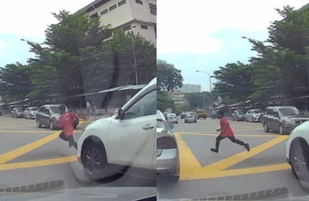 PETALING JAYA: Seorang pelajar sekolah dilihat melintas jalan secara melulu hingga hampir mengakibatkan kemalangan di hadapan sebuah sekolah rendah.
