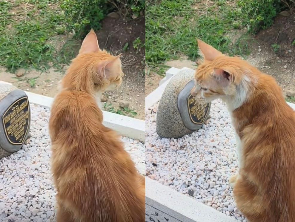 Video berdurasi 21 saat itu turut memaparkan kucing tersebut duduk di atas pusara pemiliknya sambil mengeluarkan suara seolah-olah sedang berbual.