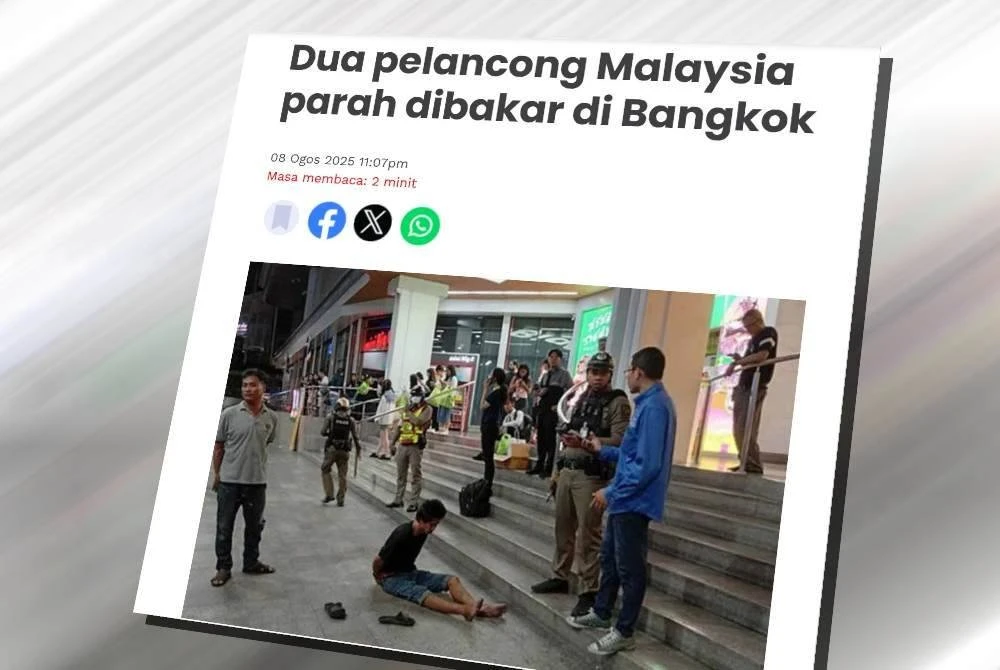 Dua rakyat Malaysia itu, dikenali sebagai Gan Xiao Zhen, 27, dan teman lelakinya, Ong Yik Leong, 26, diserang oleh seorang lelaki penganggur yang didakwa menyimbah pencair sebelum membakar mereka berhampiran sebuah pusat beli-belah di Jalan Ratchadamri, kira-kira jam 10 malam Khamis.