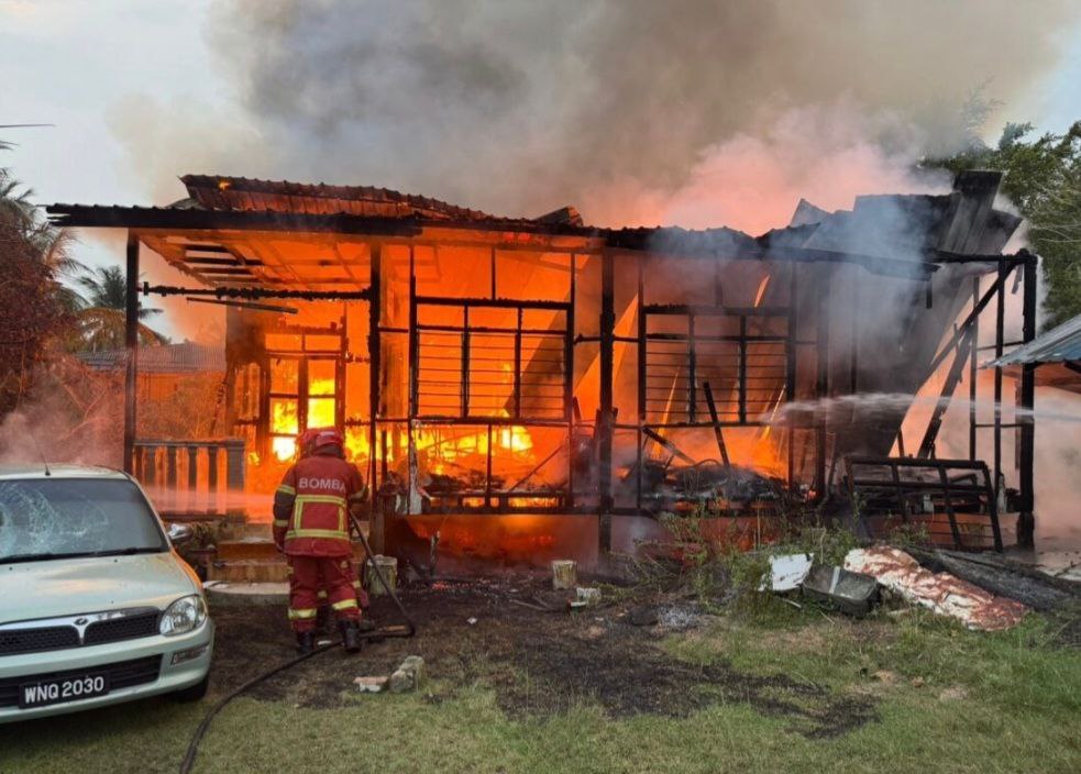 KUANTAN: Sebuah rumah musnah sepenuhnya dalam kebakaran di Kampung Kurnia, Batu 3, Jalan Kuantan – Gambang, di sini, awal pagi tadi.