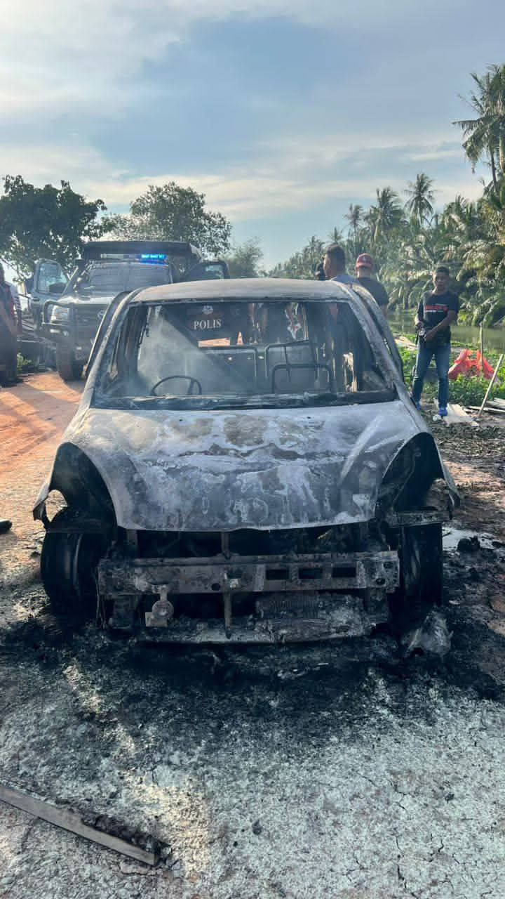 Siasatan awal mendapati kereta itu ditemui dalam keadaan rentung terbakar dan terdapat satu rangka manusia turut rentung terbakar di tempat duduk pemandu dalam kereta tersebut.