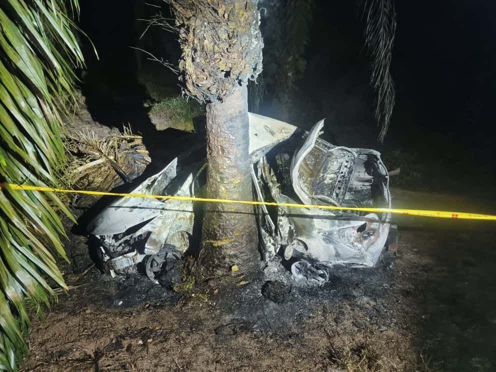 “Setibanya di lokasi kejadian didapati kereta tersebut terbabas dan melanggar sebatang pokok lalu terbakar. Terdapat dua mangsa dalam kereta tersebut.