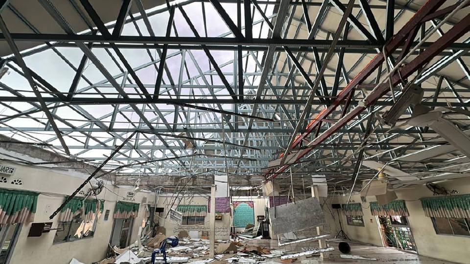 Dalam video lain pula, kelihatan sebahagian bumbung sekolah turut roboh sekali gus mencetuskan panik dalam kalangan kakitangan sekolah.