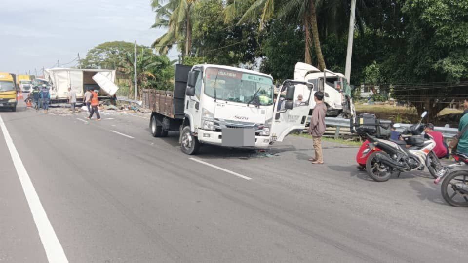 Terdahulu, tular rakaman kamera belakang sebuah kereta berdurasi 43 saat memaparkan sebuah treler merempuh beberapa kenderaan di hadapan Masjid Sabak Uni, Parit Raja di sini.- Majestic