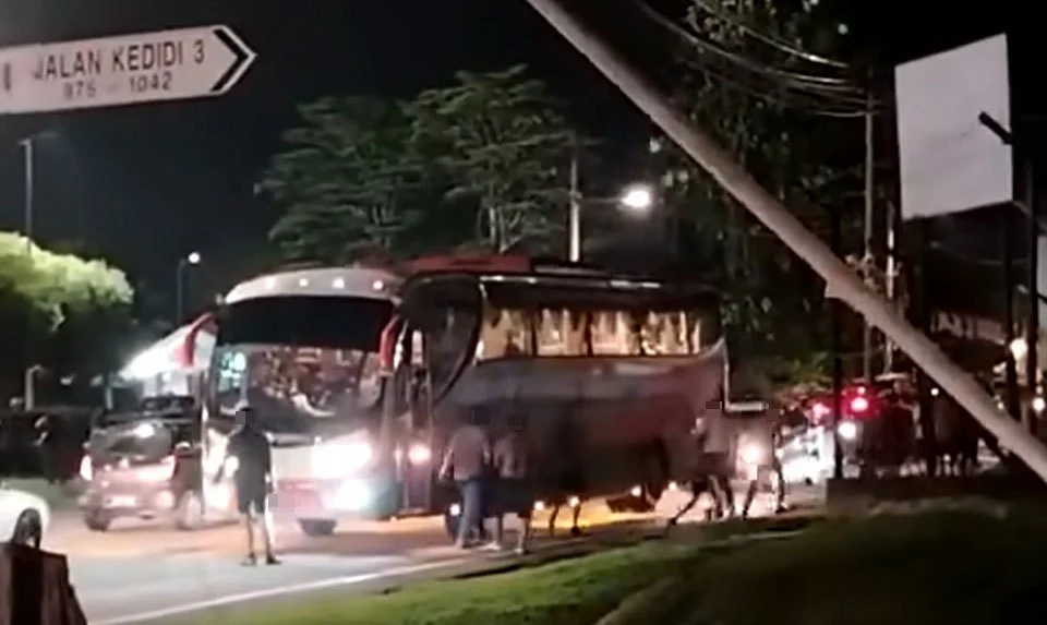 Menerusi satu video di laman Facebook Penyulam Aksara, kejadian dipercayai berlaku apabila beberapa individu membaling batu ke arah sebuah bas penyokong sehingga merosakkan cermin kenderaan berkenaan.