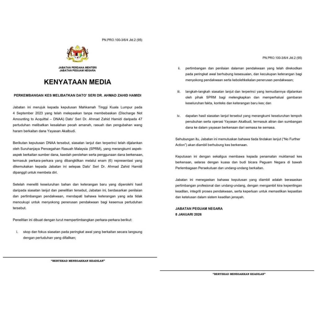 • 47 tuduhan rasuah Ahmad Zahid diputuskan ‘tiada tindakan lanjut’