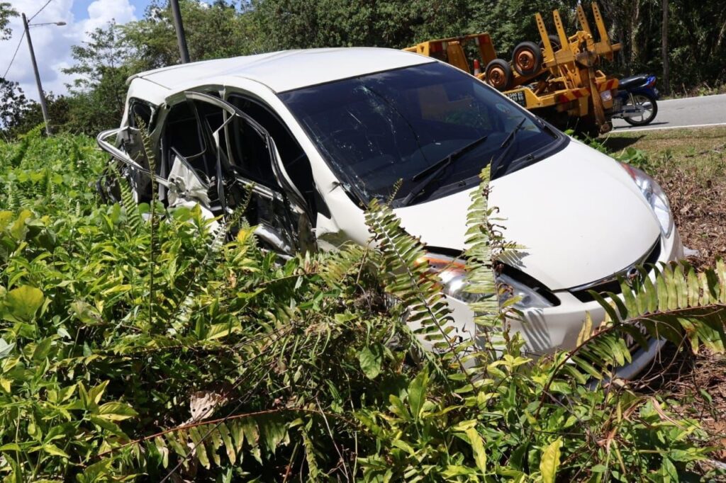 “Perodua Myvi dipandu seorang wanita berusia 50 tahun bersama-sama seorang lelaki dewasa berusia 26 tahun dan seorang kanak-kanak lelaki berusia lima tahun.