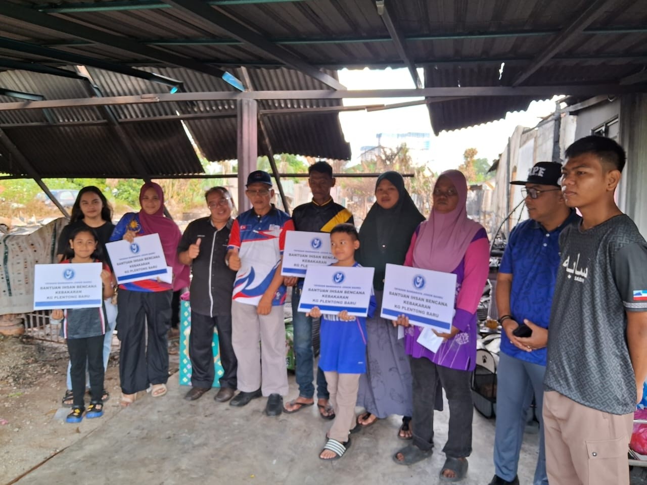 Hadir sama menyampaikan sumbangan kepada mangsa kebakaran, Ahli Majlis Bandaraya Johor Bahru (MBJB) Zon Desa Harmoni, Khairul Azlan Sulung dan Ketua Kampung Senibong, Abdul Rahim Moin.- MAJESTIC